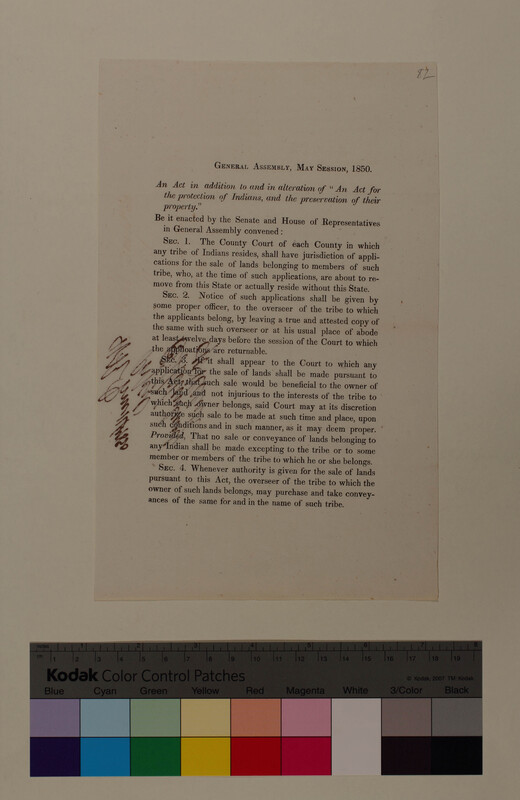 An Act in Addition to an Act for the Protection of Indians and their Property