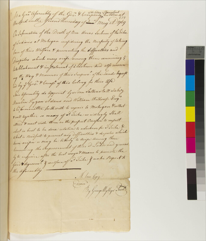 Appointment of a Committee to Attend the Installment of a Mohegan Sachem