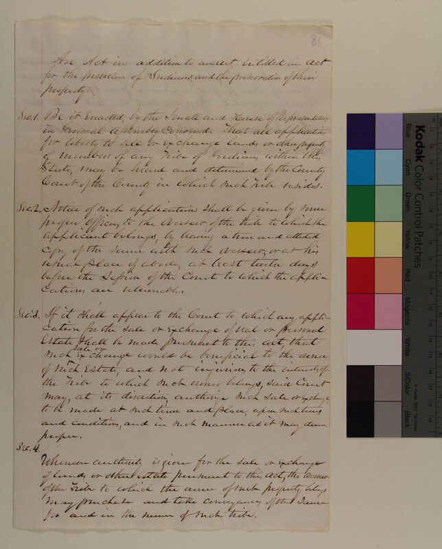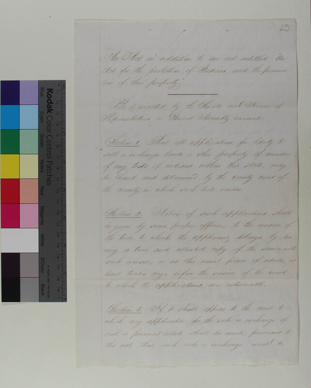 An Act in Addition to an Act for the Protection of Indians and Preservation of their Property
