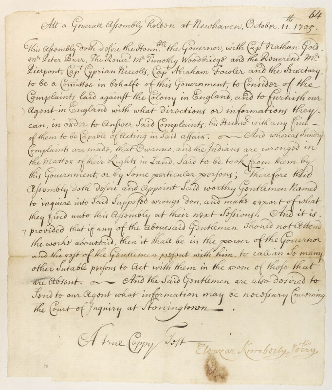 Act Desiring Governor to Write to Agent Jackson relative to the Mohegan Affair