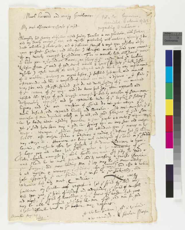 Abraham Pierson's Petition to the Commissioners of the United Colonies of New England