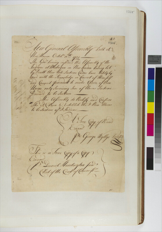 Account of the Disposition of Funds for Mohegan Sachem's Family and Council