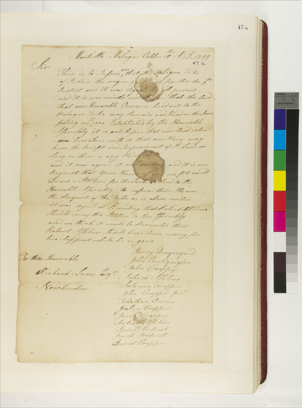 Petition of the Mohegan Indians to the Connecticut General Assembly Protesting the Appeal of a Law relative to Indian Debt