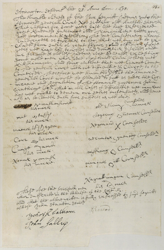 Pequot Petition to the General Court of the Colony of Connecticut Requesting to be under the Regulation of Governor John Winthrop
