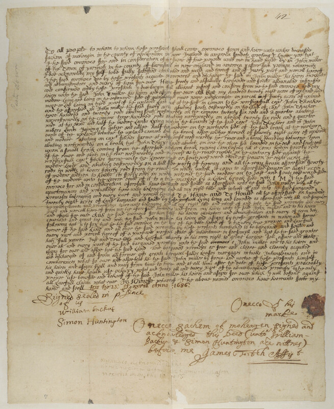 Owaneco's Transfer of His Right to the Lands around New London bounds to the Mohegan People