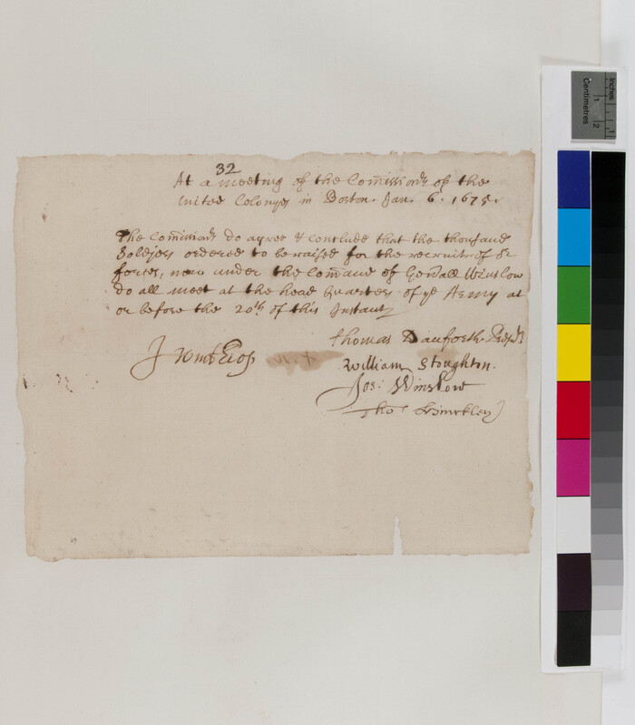 Order from the Commissioners of the United Colonies to Josiah Winslow