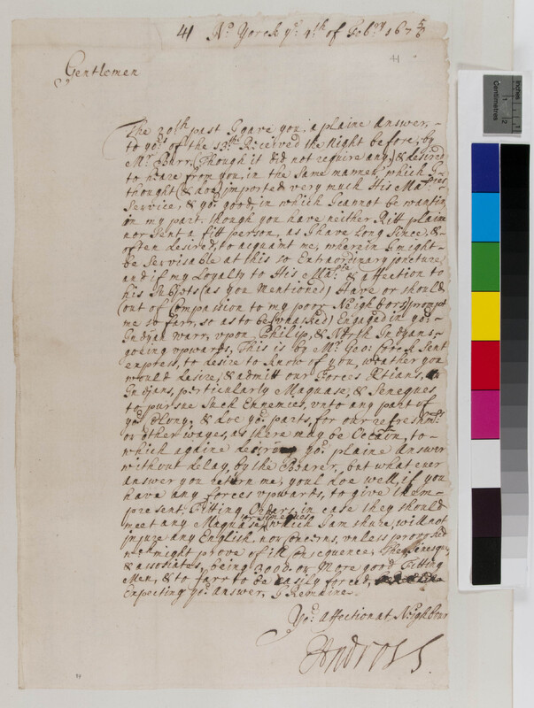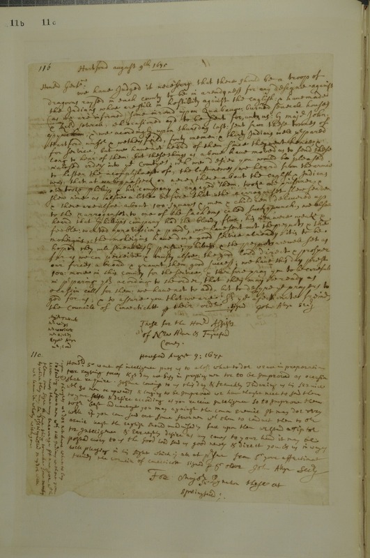 Letter from Edmond Andros to the Governor and Council of Connecticut in regard to Marching