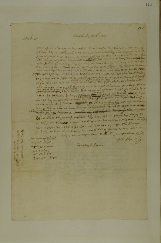 Letter from Edward Rawson to the Governor and Council of Connecticut in relation to the Indian War