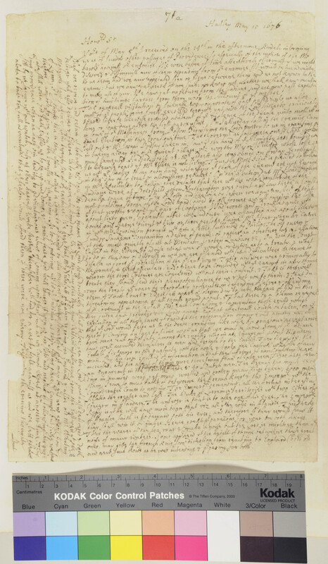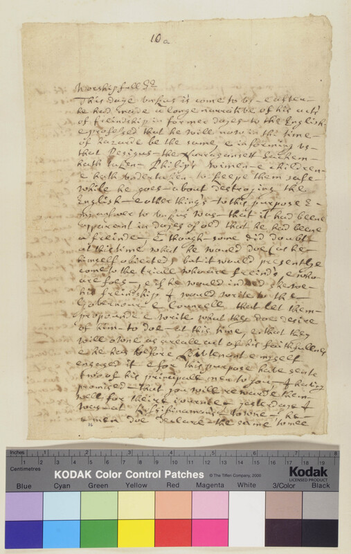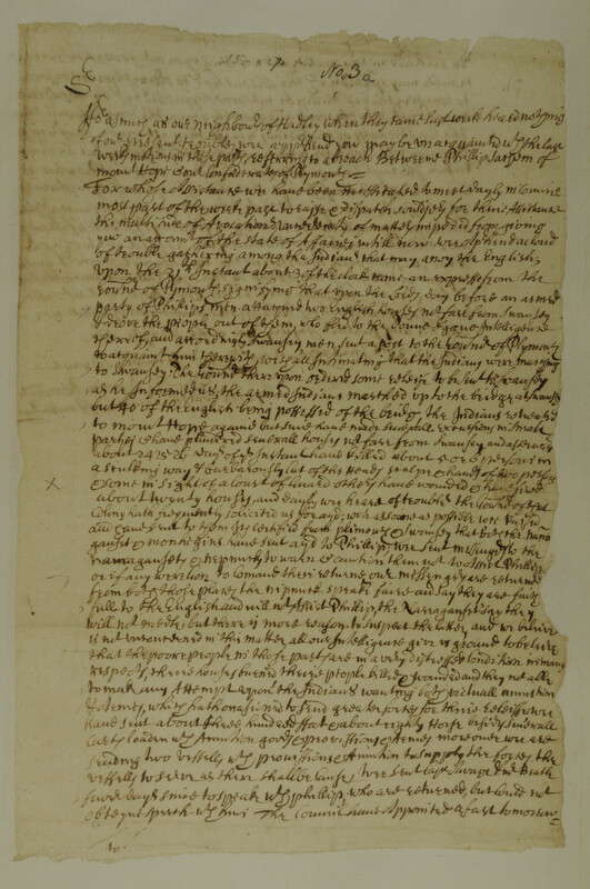 Letter from Edward Rawson to the Governor and Council of Connecticut, Giving an Account of the Destruction by the Indians in Plymouth Colony