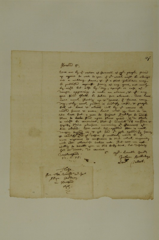 Letter from Reverend James Fitch to Captain John Allyn, about Some of the Consequences of the Indian War