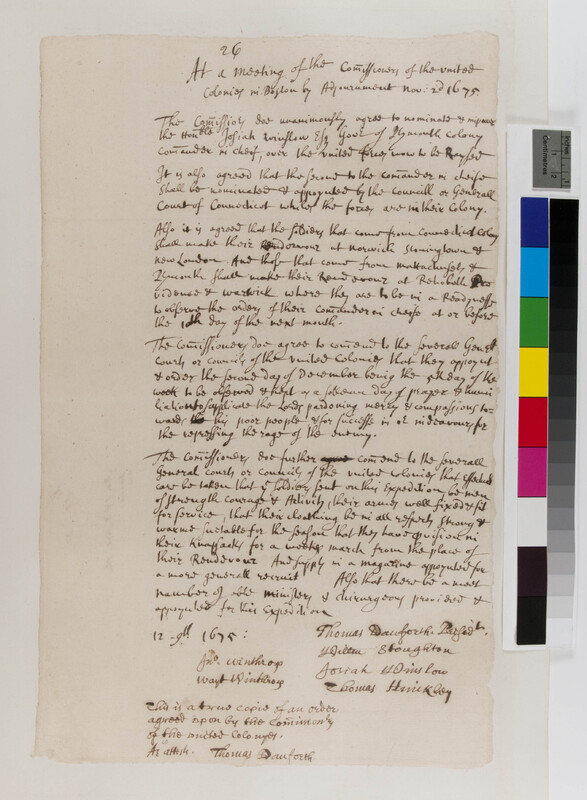 Copy of an Order Agreed upon by the Commissioners of the United Colonies