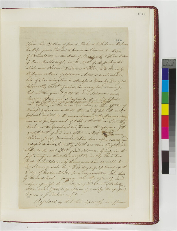 Connecticut General Assembly Resolve Ratifying Timothy Root's Deed from Solomon Adams' Heirs