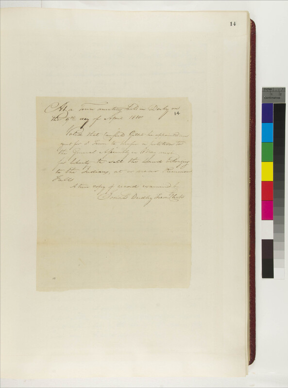 Copy of a Vote of the Town Of Derby, Connecticut regarding the Sale of Indian Land