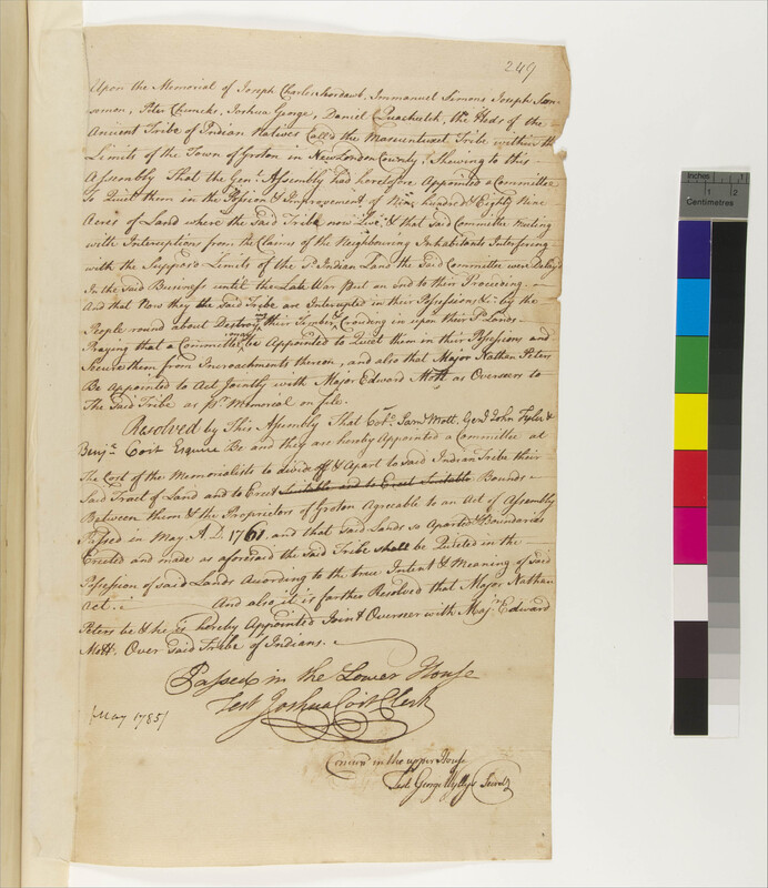 Bill of the General Assembly of Connecticut Appointing an Overseer for the Mohegan Tribe of Indians