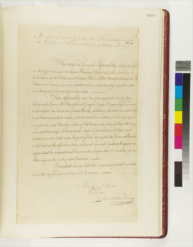 Appointment of Lewis Sturgess and Others as a Committee to Examine the Accounts of Aaron Hawley Guardian to the Golden Hill Indians