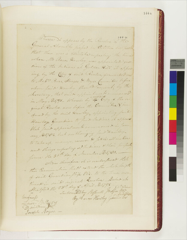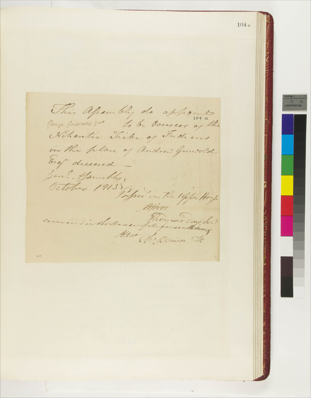 Appointment by Connecticut General Assembly of Overseer for the Niantic Tribe of Indians