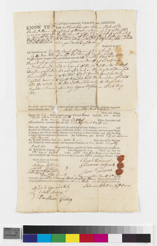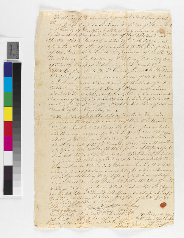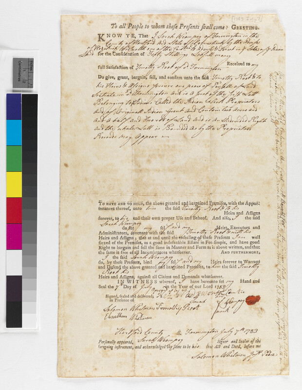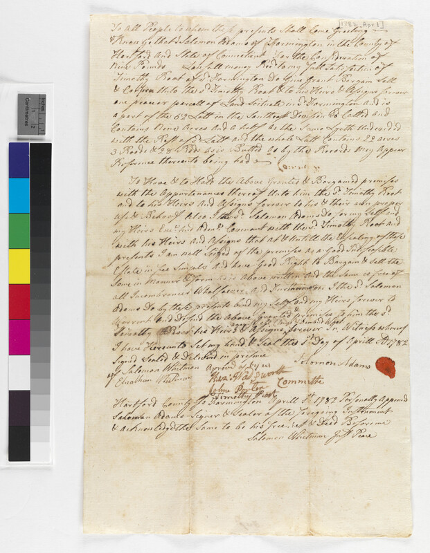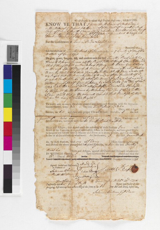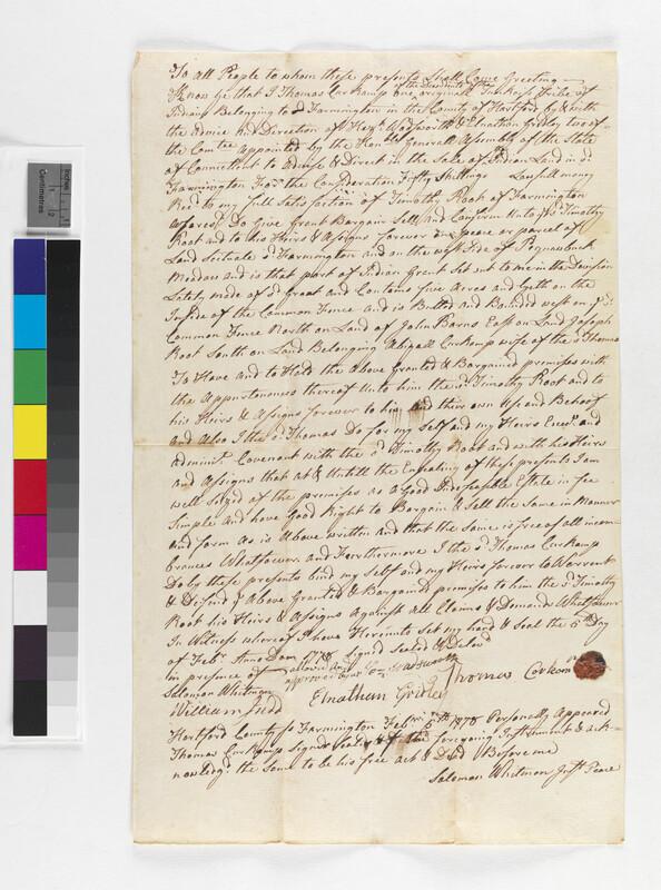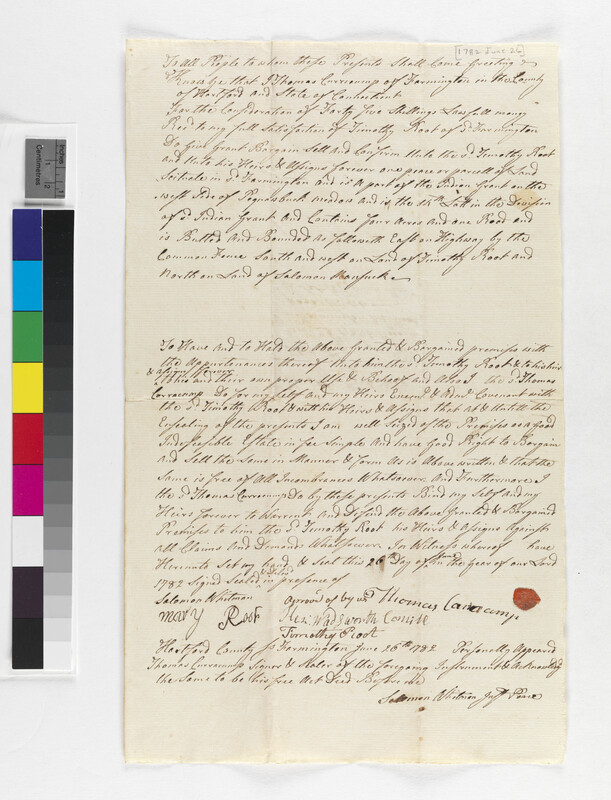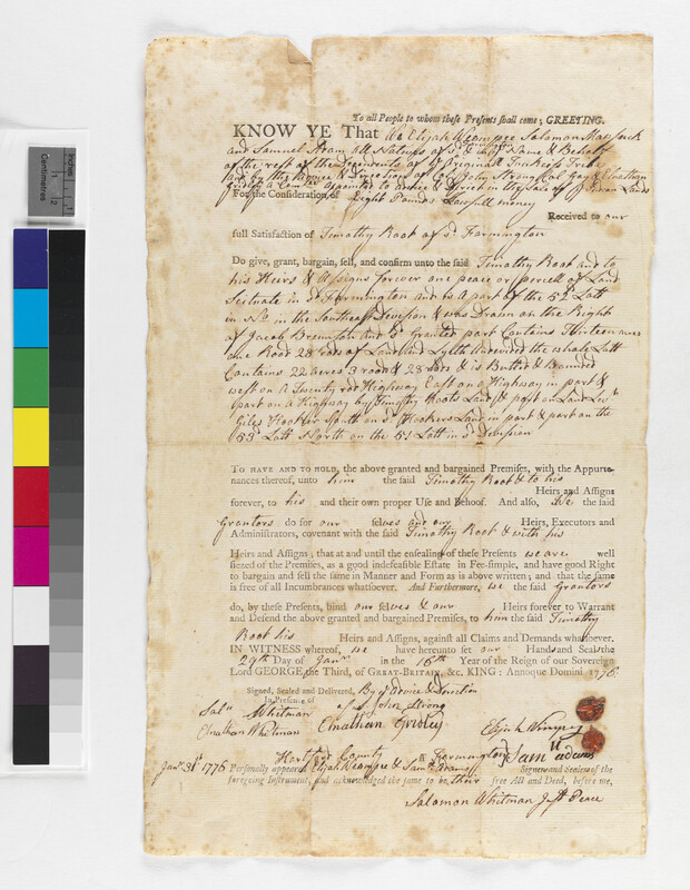 Deed from Noadiah Hooker to Timothy Root and Fenn Wadsworth
