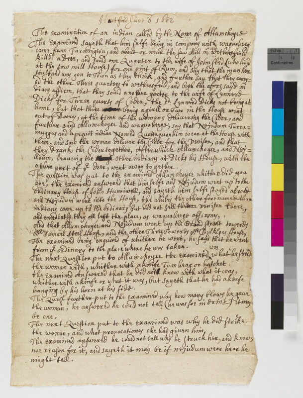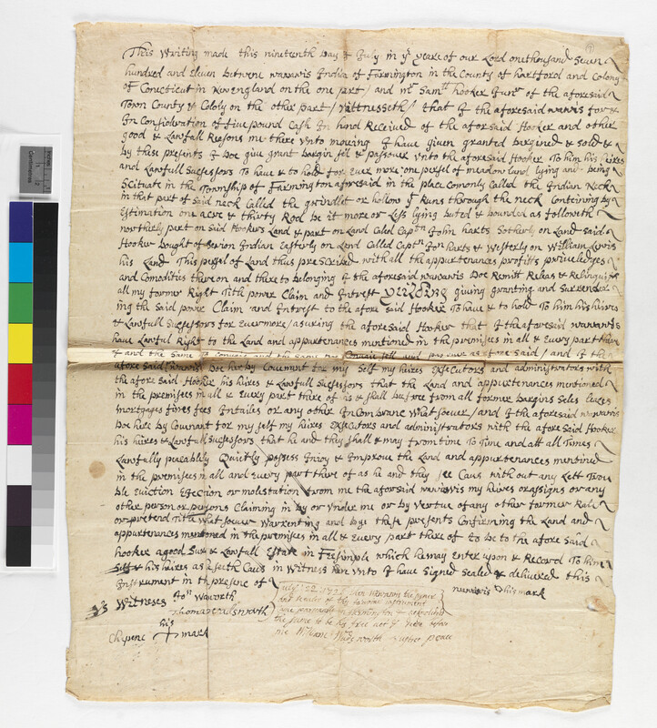 Deed from Wawowos of the Tunxis to Samuel Hooker