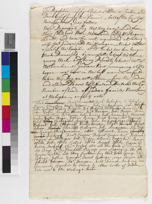 Deposition of Captain Robert Allen and Daniel Leffingwell and Census of Mohegan Tribe