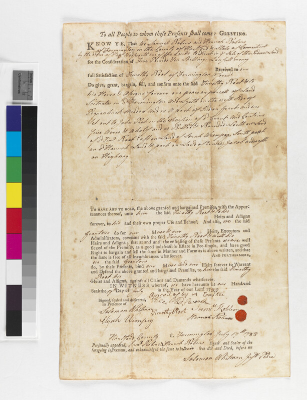 Deed of Timothy Root to Hezekiah and Seth Wadsworth