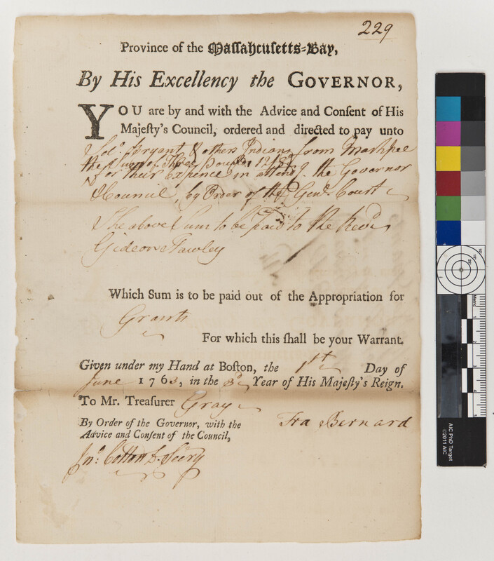 Order to Pay Solomon Bryant and Other Indians from Mashpee