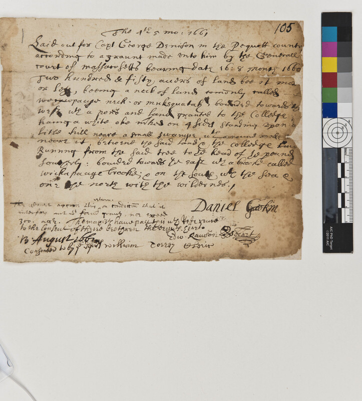 Massachusetts General Court's Approval of a Captain George Denison's Land Grant