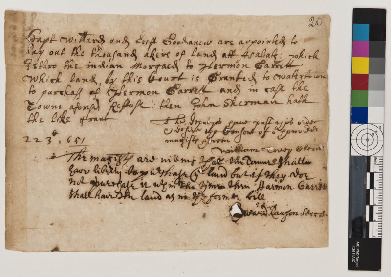 Massachusetts General Court's Approval of a Harmon Garret's Land Grant