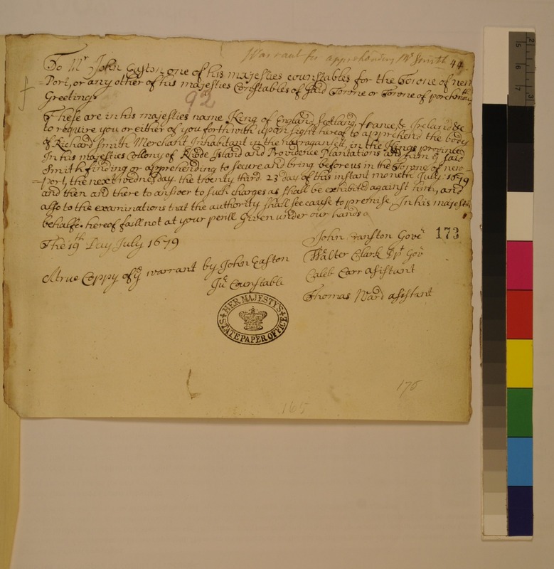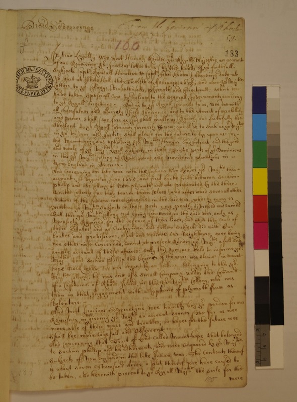 Letter from John Cranston, Governor of Rhode Island, to King Charles II