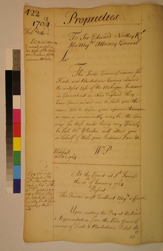 Excerpt from the Proceedings of the Committee for Trade and Foreign Plantations concerning the Petition of John Wampus