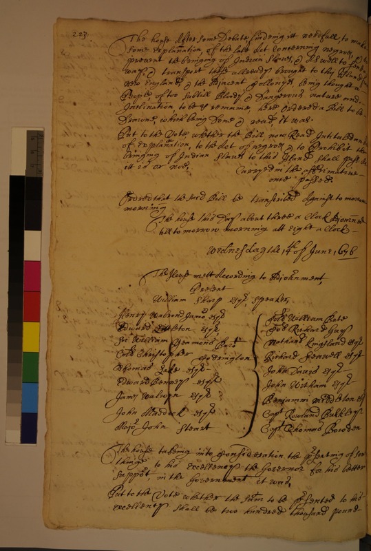 Continuance on the Drafting of a Bill to Prohibit the Bringing of Indian Slaves to this Island