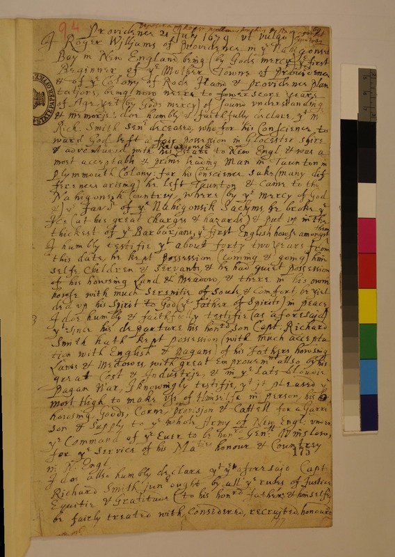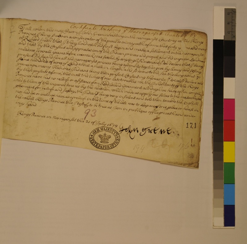 Declaration of the King's Commissioners regarding the Submission of the Narragansett