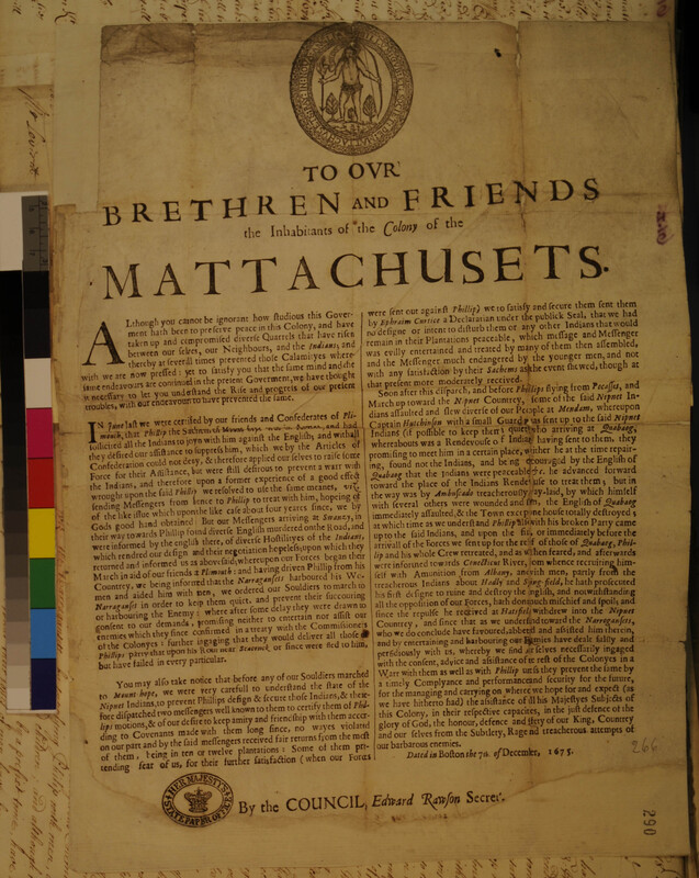 Declaration of the Colony of Massachusetts concerning King Philip's War