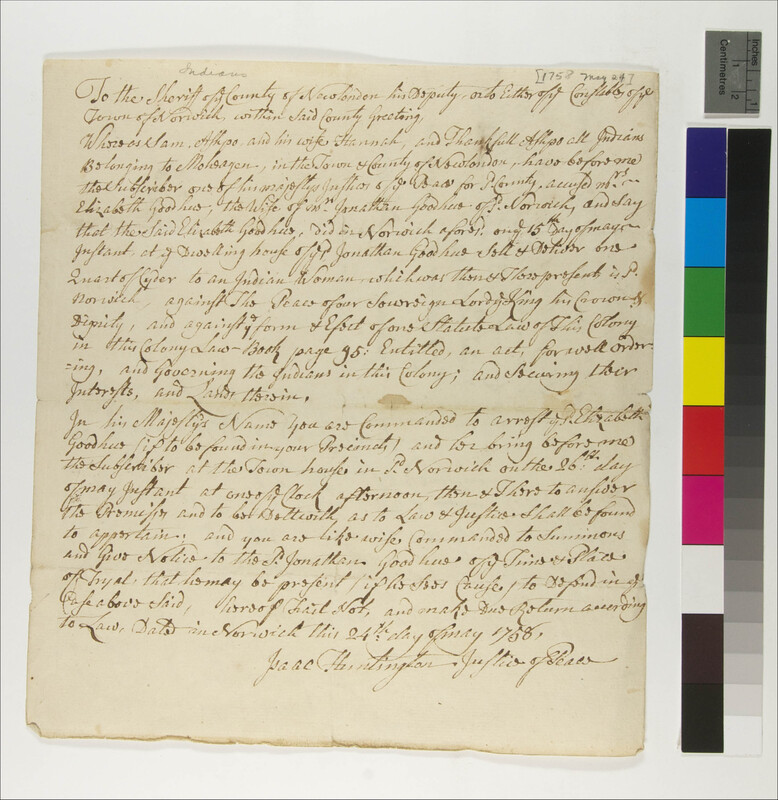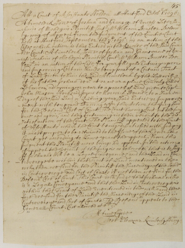 William Brewster's Appeal to the General Court against Abimileck, Grandson of Uncas