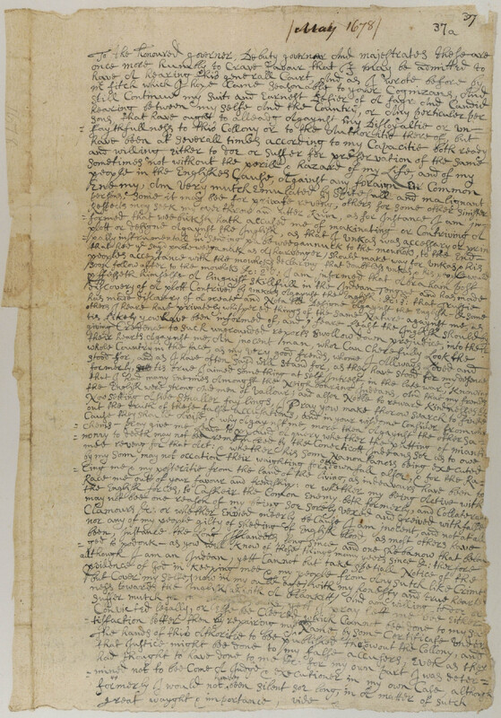 Petition of Uncas concerning Mohawk Conspiracy and Vindication of his Name