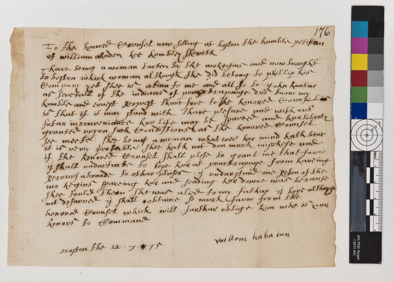 Petition of William Ahaton to the Massachusetts Council Asking for the Release of A Relation