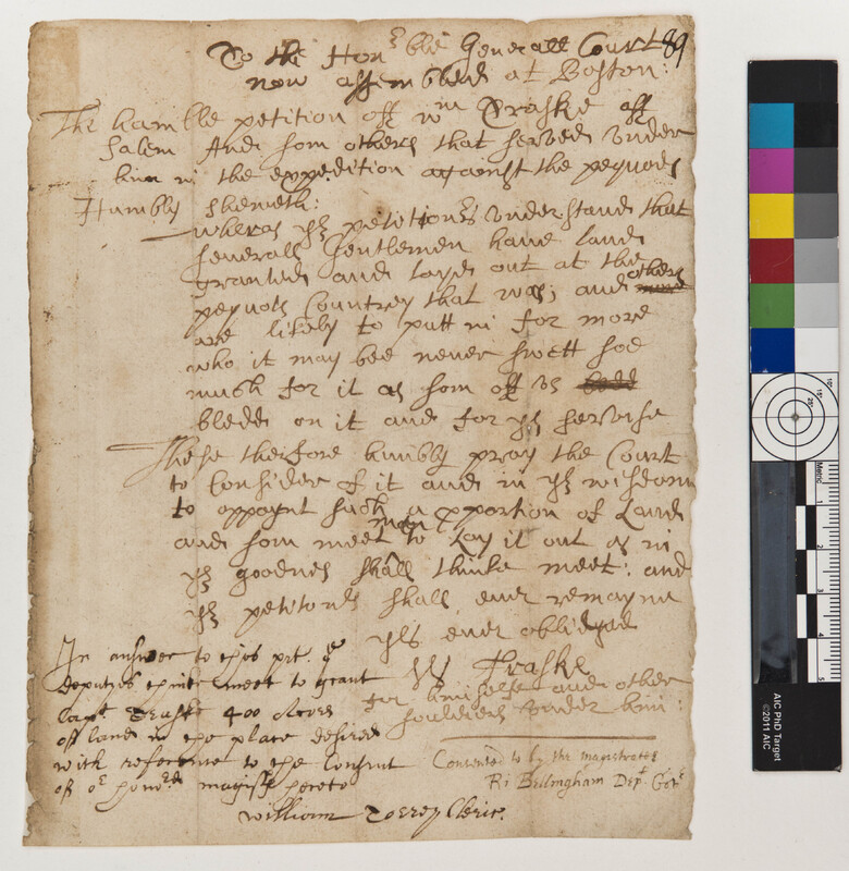 Petition of Captain William Trask and Others for a Grant in the Pequot Country