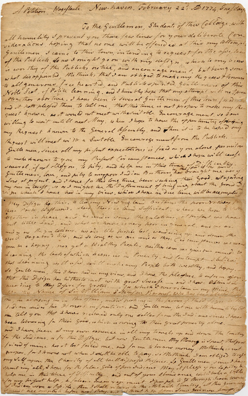 Petition of Joseph Johnson to Students of Yale College