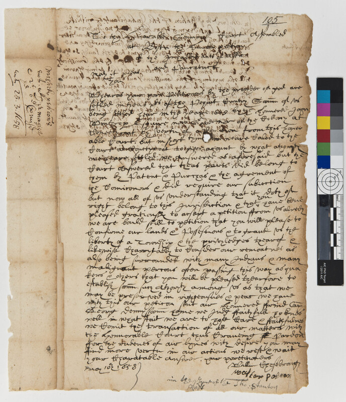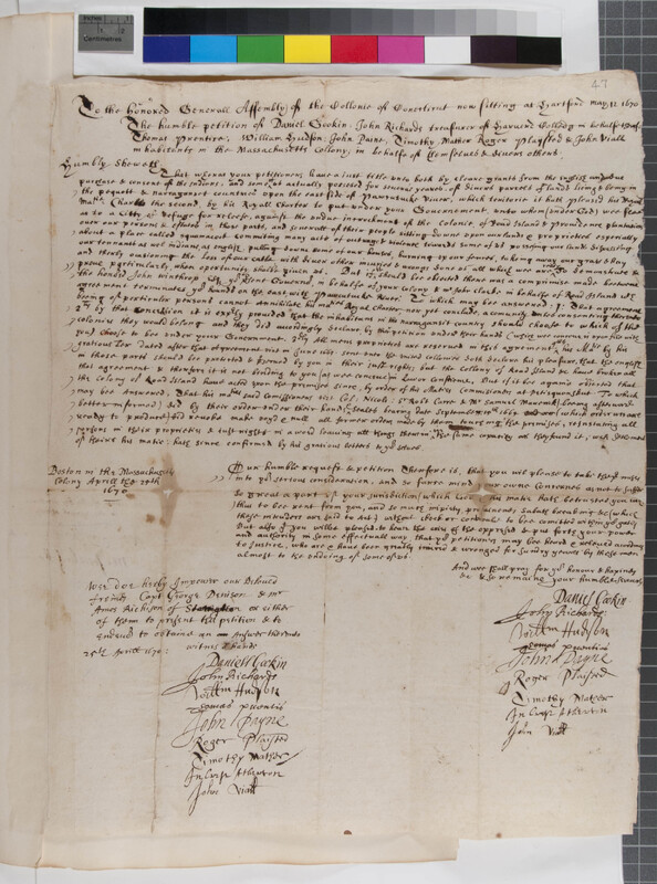 Petition of John Winthrop, Jr. to the Commissioner of the United Colonies