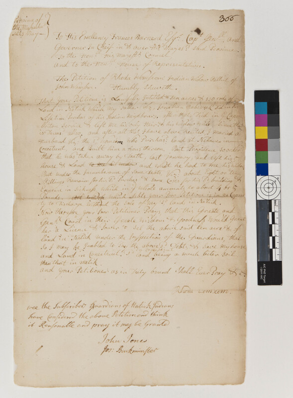 Petition of Rhoda Wamsquan to the Massachusetts House of Representatives