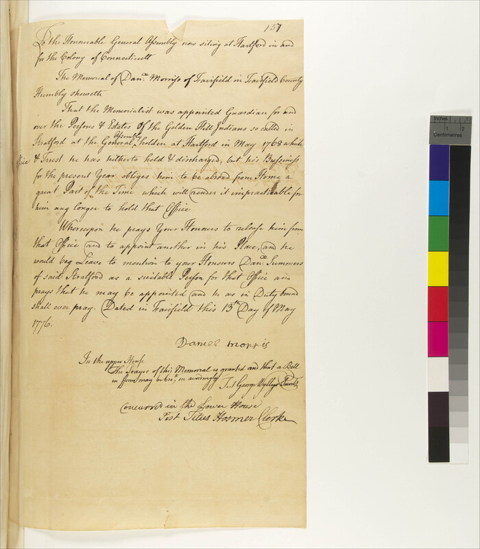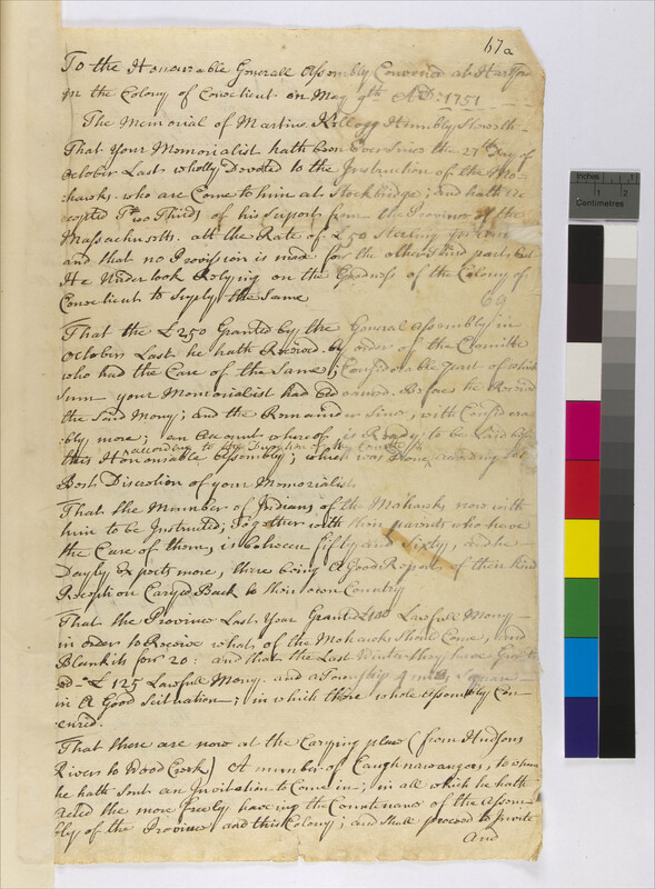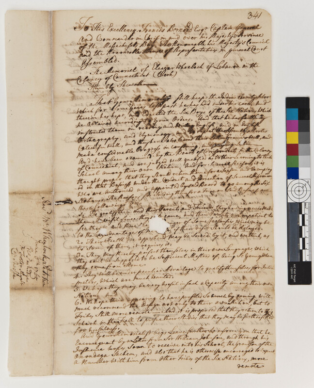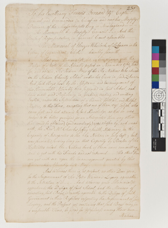 Memorial of Eleazar Wheelock to the Massachusetts House of Representatives