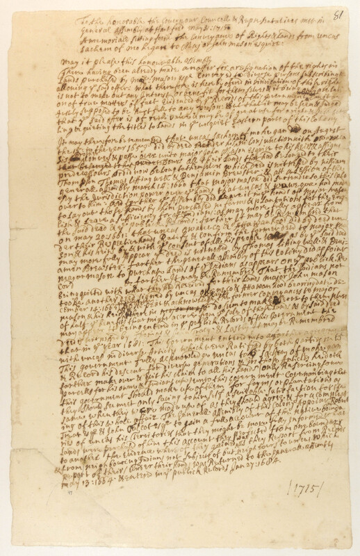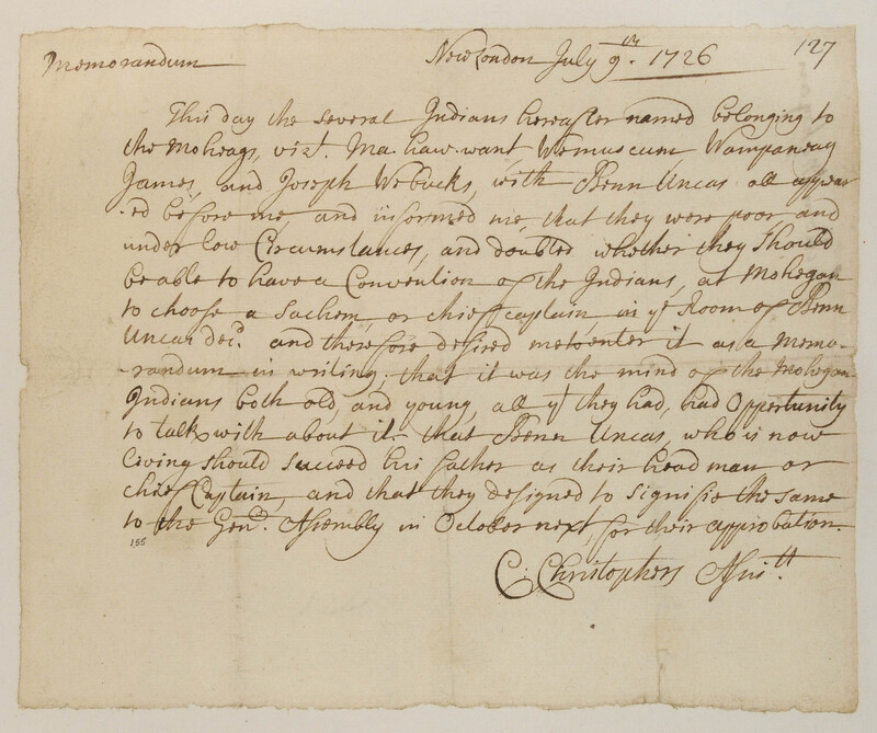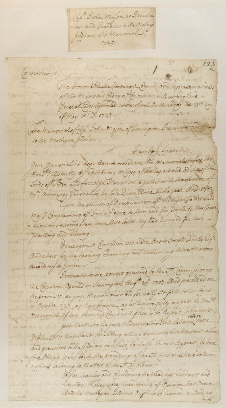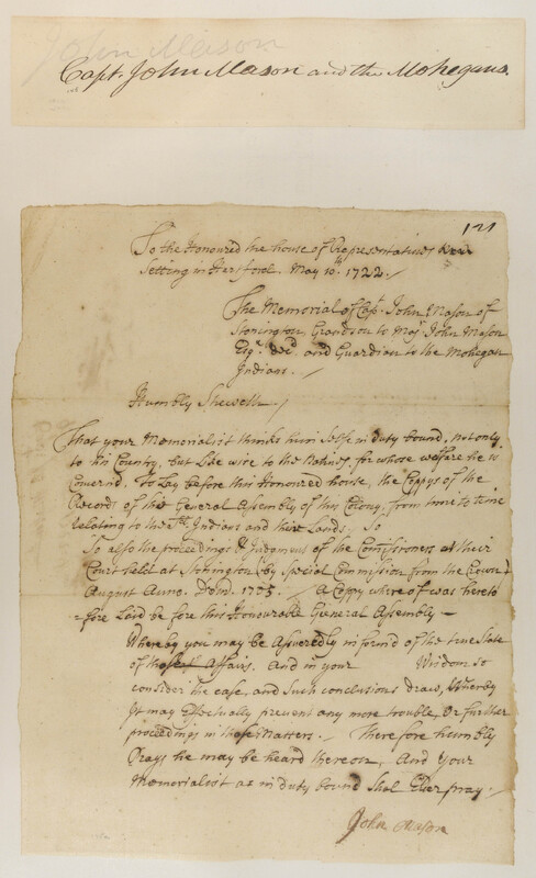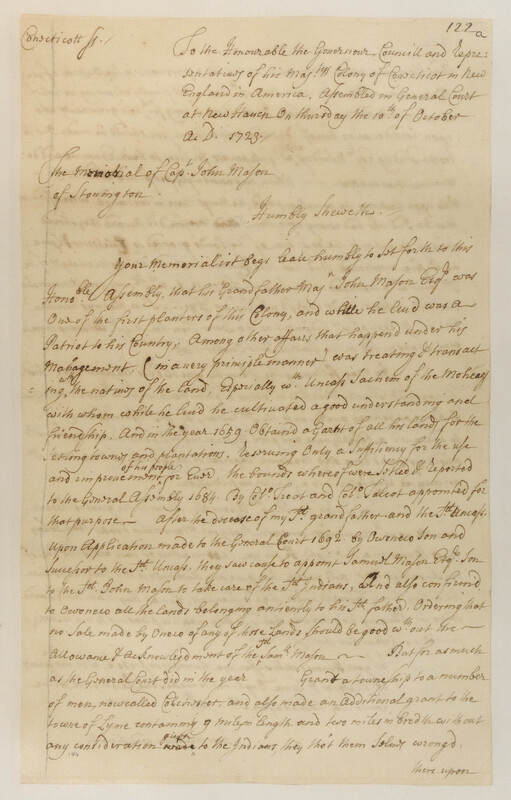 Memorial Detailing Conveyance of Mohegan Land to Major John Mason
