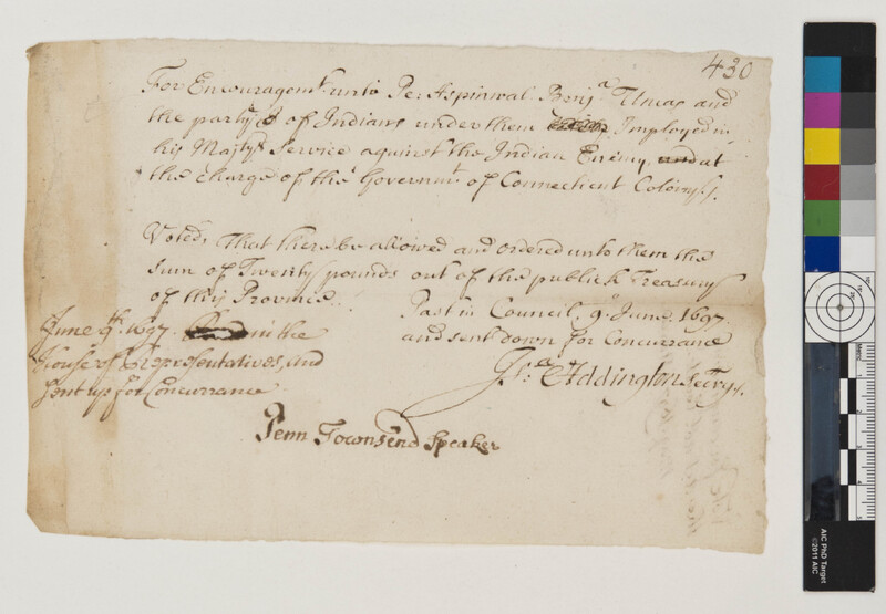 Massachusetts General Court Vote Authorizing Payment to Indians Serving in the Military Service