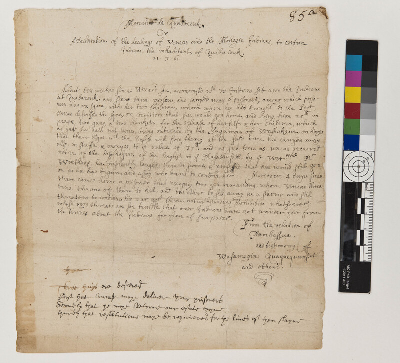 Massachusetts General Court Orders Regarding Cashawashett and the Pequots under his Command