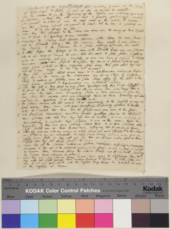 Letter from Soloman Stoddard regarding Disarming of Norwottuck Indians