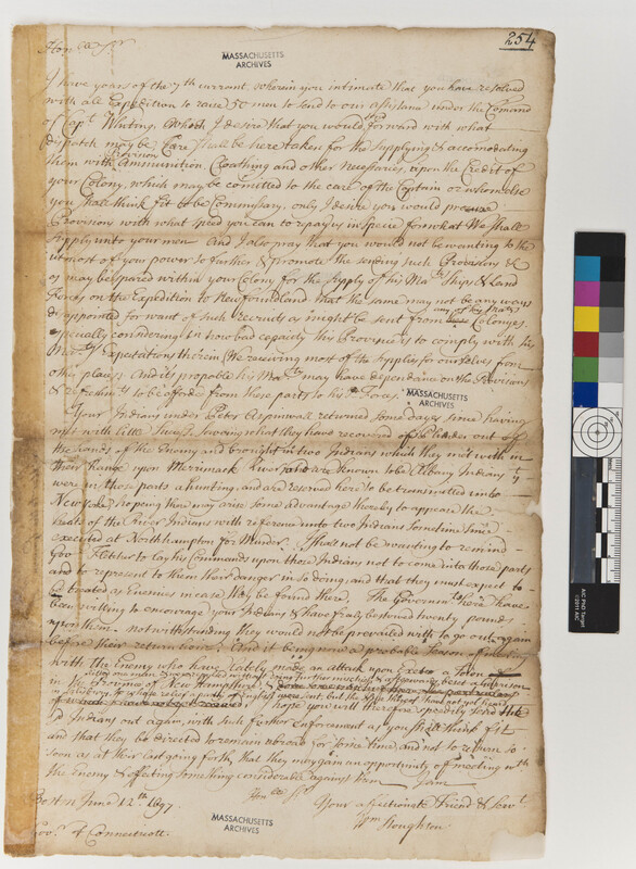 Letter from William Stoughton to Robert Treat