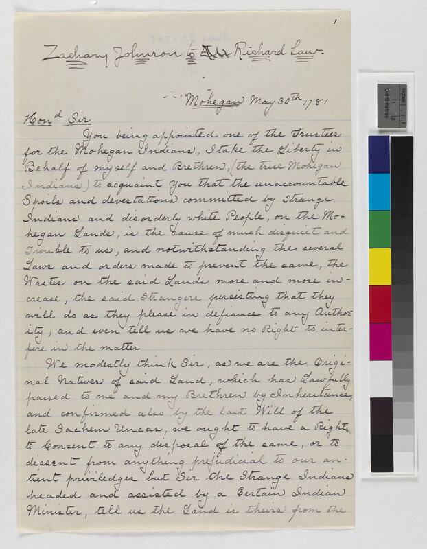 Letter from Pequots of Groton to Gov. Talcott