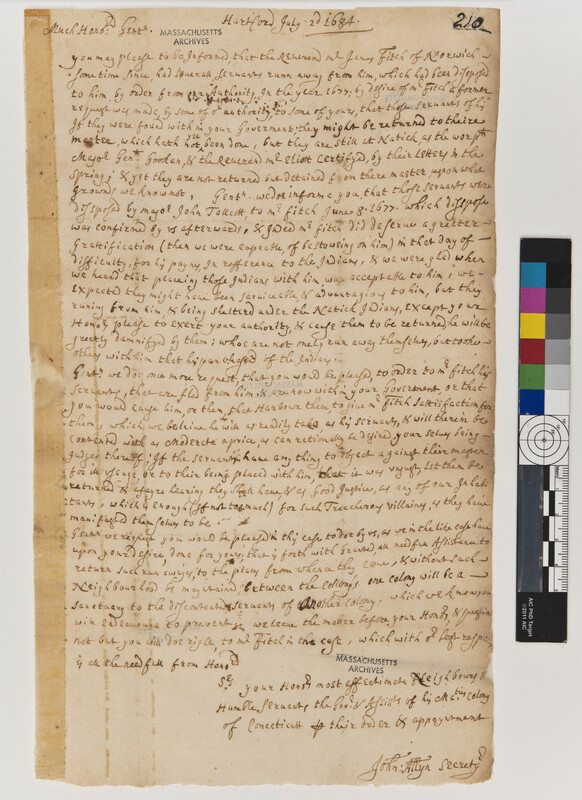 Letter from the Governor and Assistants of Connecticut