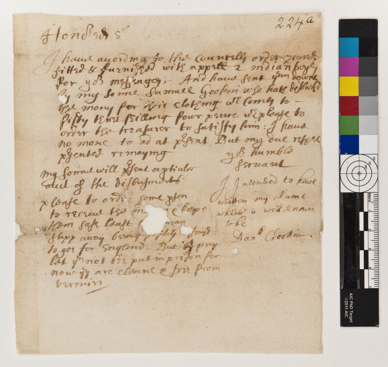 Letter of Daniel Gookin to the Massachusetts Council