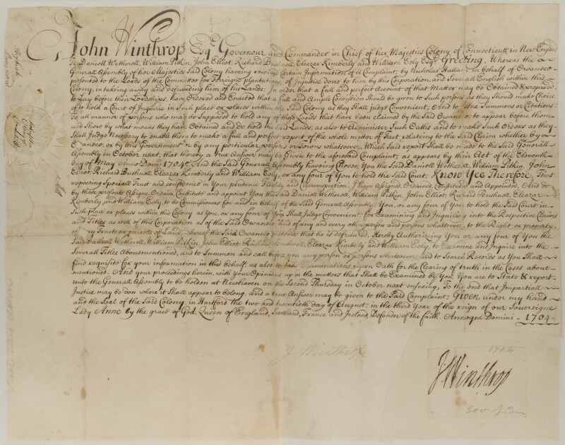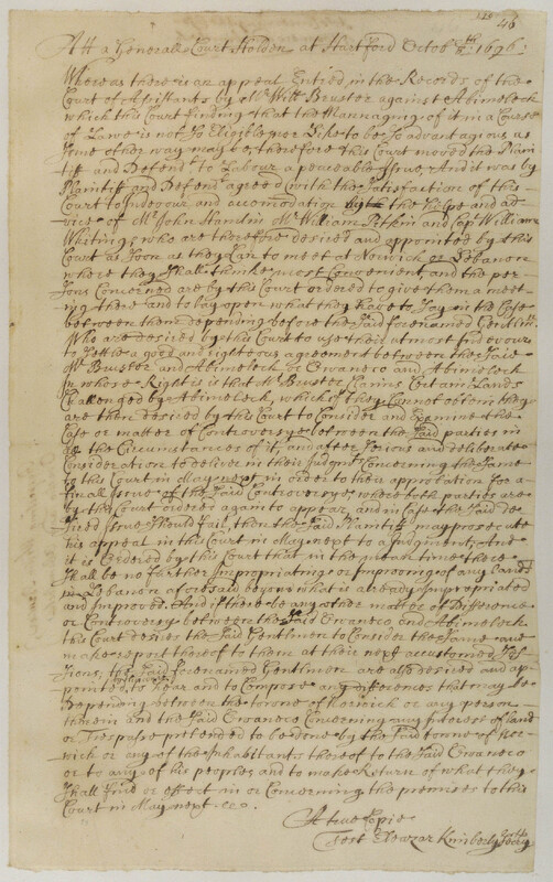Act concerning William Brewster's Appeal to the General Court against Abimileck, Grandson of Uncas
