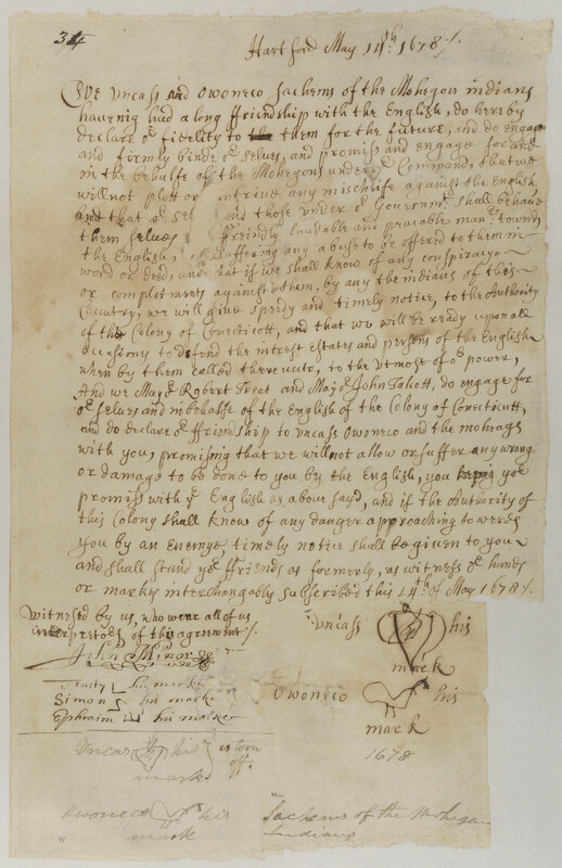 Agreement between Mohegans and Colonists